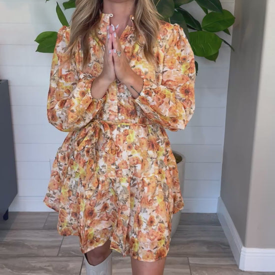 Step into fall with the Floral High Mock Neck Dress, designed to brighten your day with its bold, lively print. Featuring a flattering fit and playful button-front details, this dress pairs perfectly with a stylish belt to accentuate your waist. Comfortable and fun, it’s the ideal choice for feeling confident and fabulous all season long.