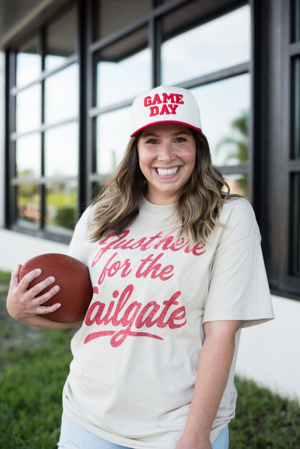 You'll be the life of the party in our Just Here For The Tailgate Oversized Tee—your go-to for all football season fun. Its roomy, comfortable fit lets you move freely while enjoying every tailgate party moment. Stay playful and ready for game day good times in this easygoing favorite.